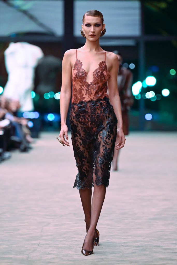 Across multiple shows, designers played with transparency, lace dresses, sheer skirts, and delicate fabrics layered over the body.