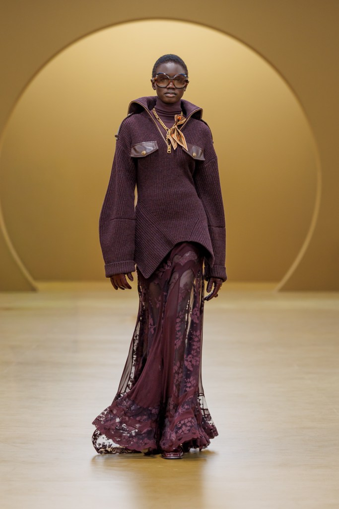 Another thing I couldn’t help noticing was how many collections featured deep, rich colors, especially burgundy and dark wine tones. There’s something about burgundy that instantly makes an outfit look more elevated and sophisticated. It feels a little softer than black but still very chic.