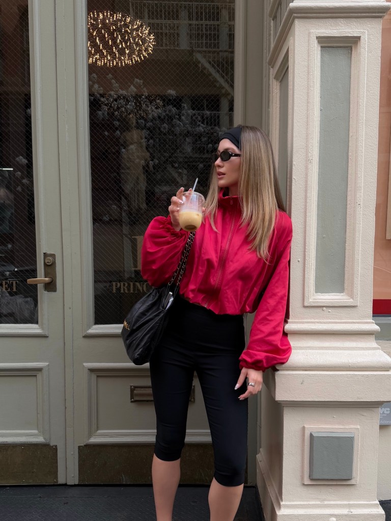 Windbreakers are being paired with softer, more refined pieces: Satin skirts, tailored pants, even dresses. That mix of sporty and polished gives outfits a more effortless feel.